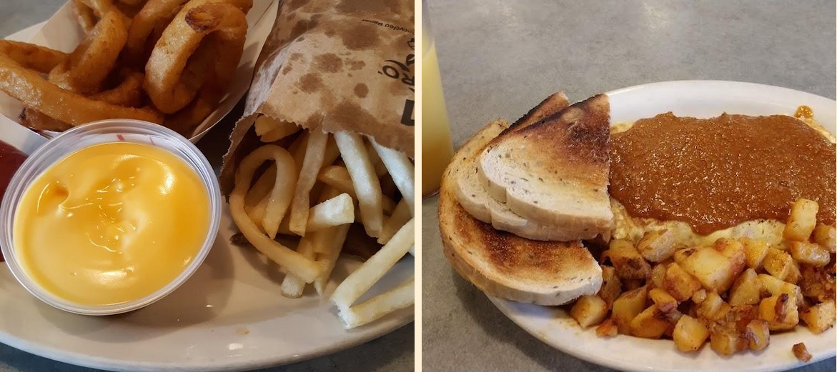 Try the Colossal Burger and the Beer Battered Onion Rings. If you love breakfast, don't miss the Eggs & Toast and delicious omelets.